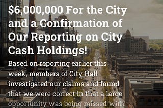 $6,000,000 For the City and a Confirmation of Our Reporting on City Cash Holdings!
